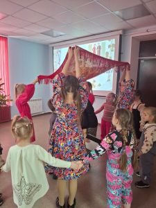 Сотрудники библиотеки рассказали детям историю возникновения государственности РФ, о том какие народы живут на территории современной России, об их колорите и идентичности. Участники встречи виртуально смогли побывать в разных уголках нашей необъятной страны, познакомиться с культурными традициями и насладиться вокальным мастерством и безупречной хореографией гостей нашего праздника: ансамбля «Ивушки» (руководитель Л.Н. Мурашова); образцового хореографического коллектива «Грация», МУК «Дворец культуры «Московский» (руководитель Н.А. Новикова): хореографического коллектива «Фантазия», МБУ ДО ДДТ (руководитель М.А.Королев).