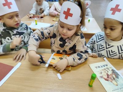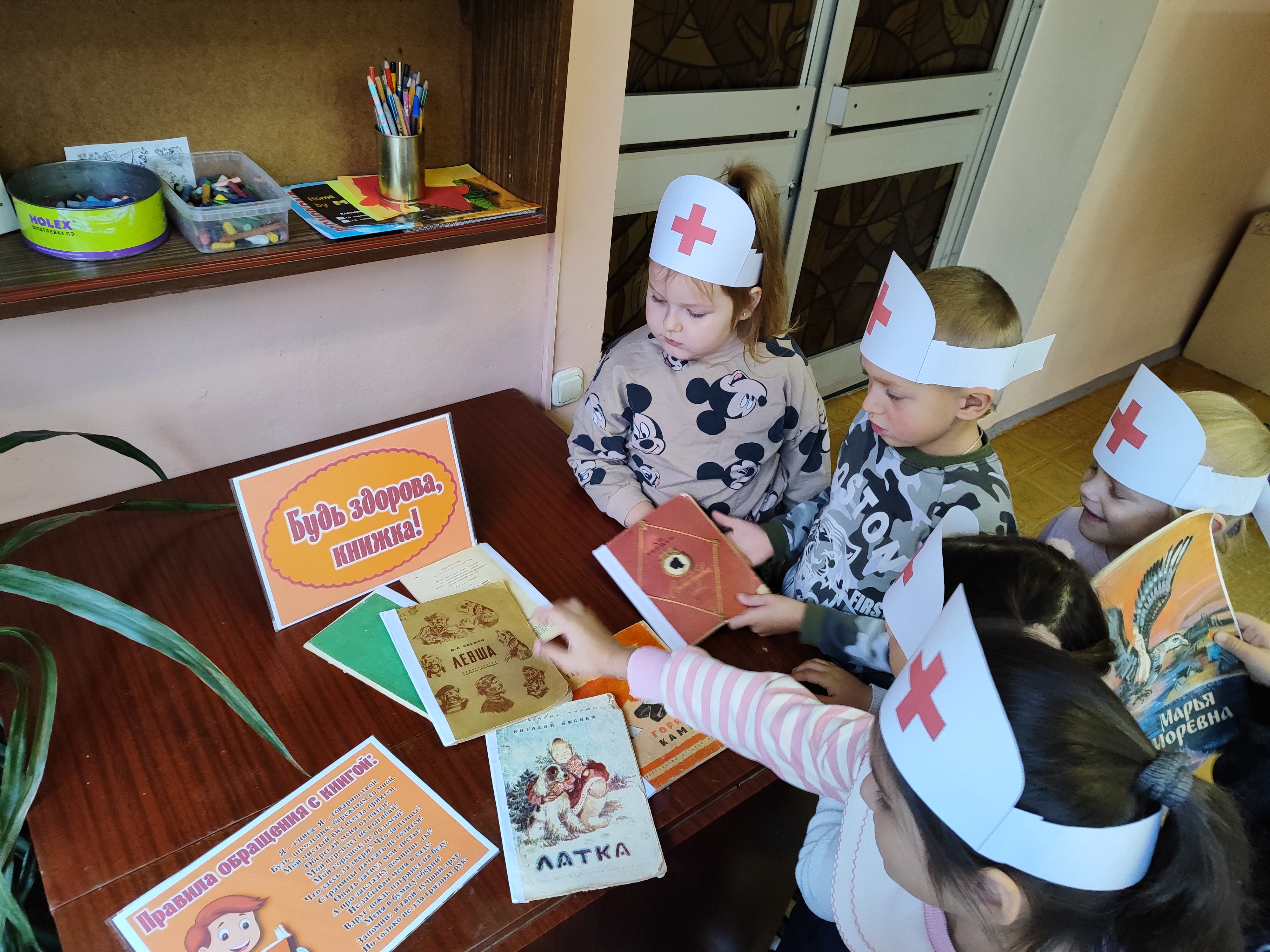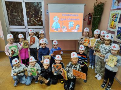 Со временем книги изнашиваются, рвутся, теряют свой внешний вид и поэтому нуждаются в ремонте. В ходе мероприятия была организованна «Книжкина больница», где юные Айболиты познакомились с «больными», нуждающимися в лечении. Используя бумагу и клей, дети, с помощью взрослых, с интересом включились в работу по ремонту ветхой литературы. Благодаря их стараниям 18 книгам удалось вернуть свой внешний вид.