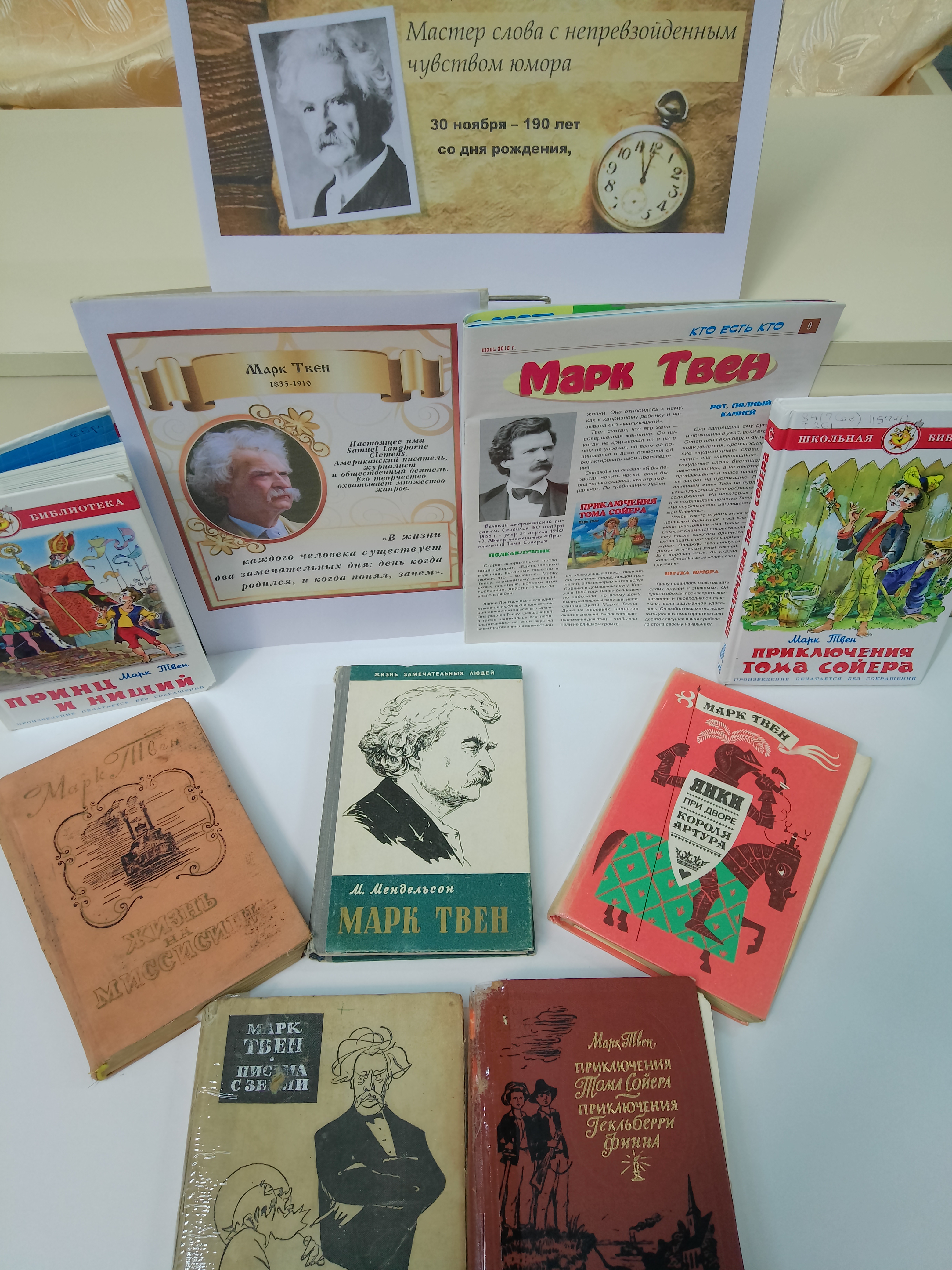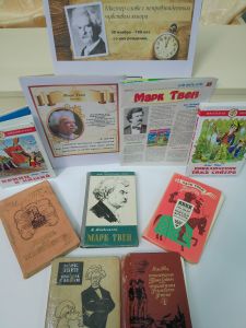 К юбилею Марка Твена в Кайдаковской сельской библиотеке №16 оформлена книжная выставка «Мастер слова с непревзойденным чувством юмора».