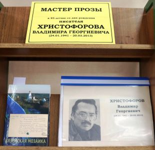 В Центральной районной библиотеке оформлена выставка «Мастер прозы» к 85-летию со дня рождения известного писателя Христофорова Владимира Георгиевича. На выставке представлены произведения писателя из фонда краеведческой литературы и статьи из сборников и периодических изданий о его жизни и творчестве.