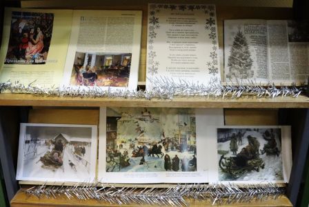 В Центральной районной библиотеке оформлена выставка-вернисаж «Этот мир очарований, этот мир из серебра!», посвященная зимним пейзажам и празднованию Нового года в живописи.