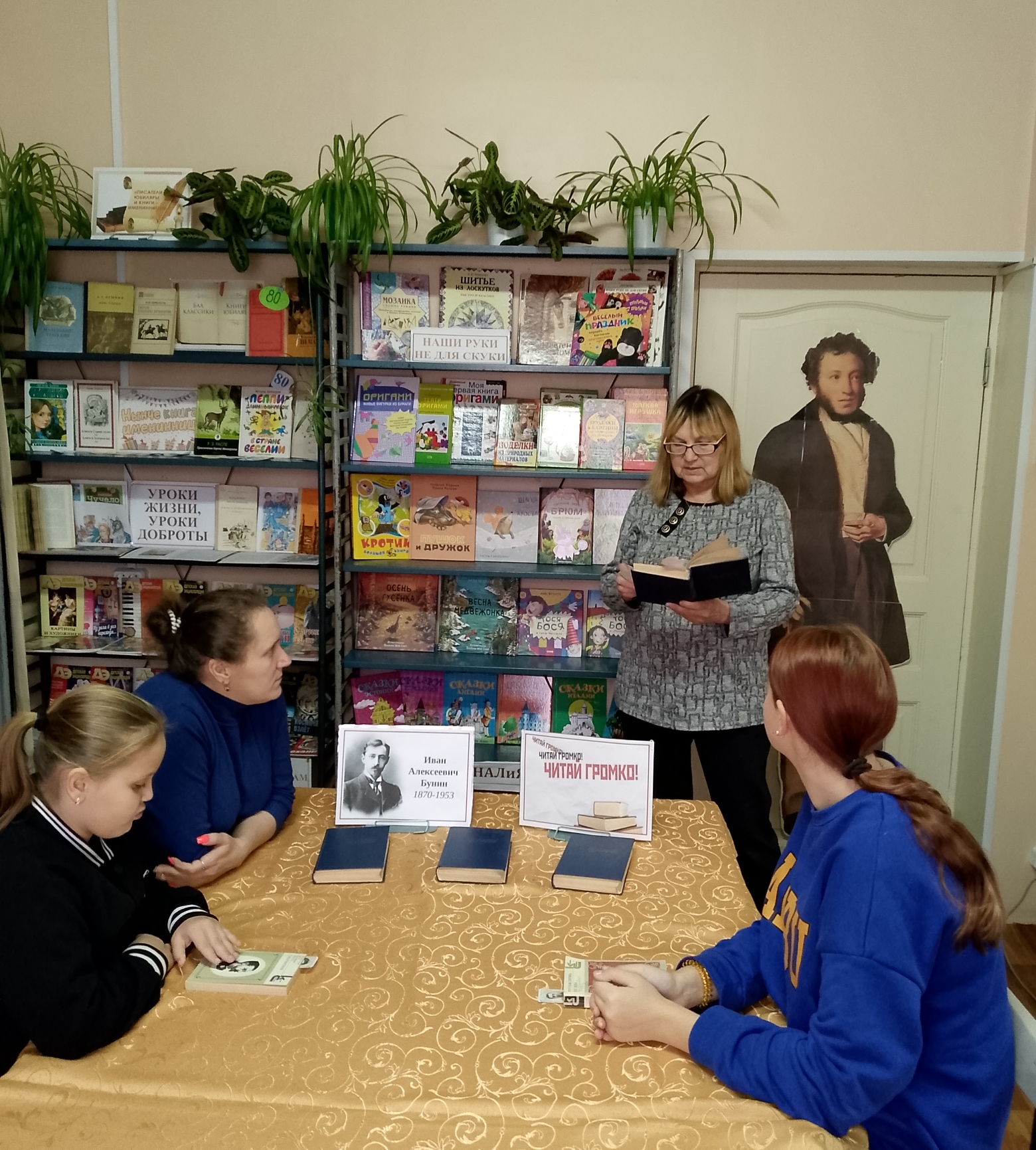 28 октября в Бухоновской сельской библиотеке №36 прошли громкие чтения «Почитаем Бунина вслух», посвящённые 155-летнему юбилею первого русского Нобелевского лауреата по литературе – Ивана Алексеевича Бунина.