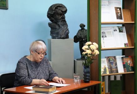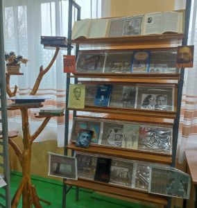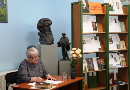 Библиотекарь провела обзор по выставке и рассказала о жизни и творчестве писателя.