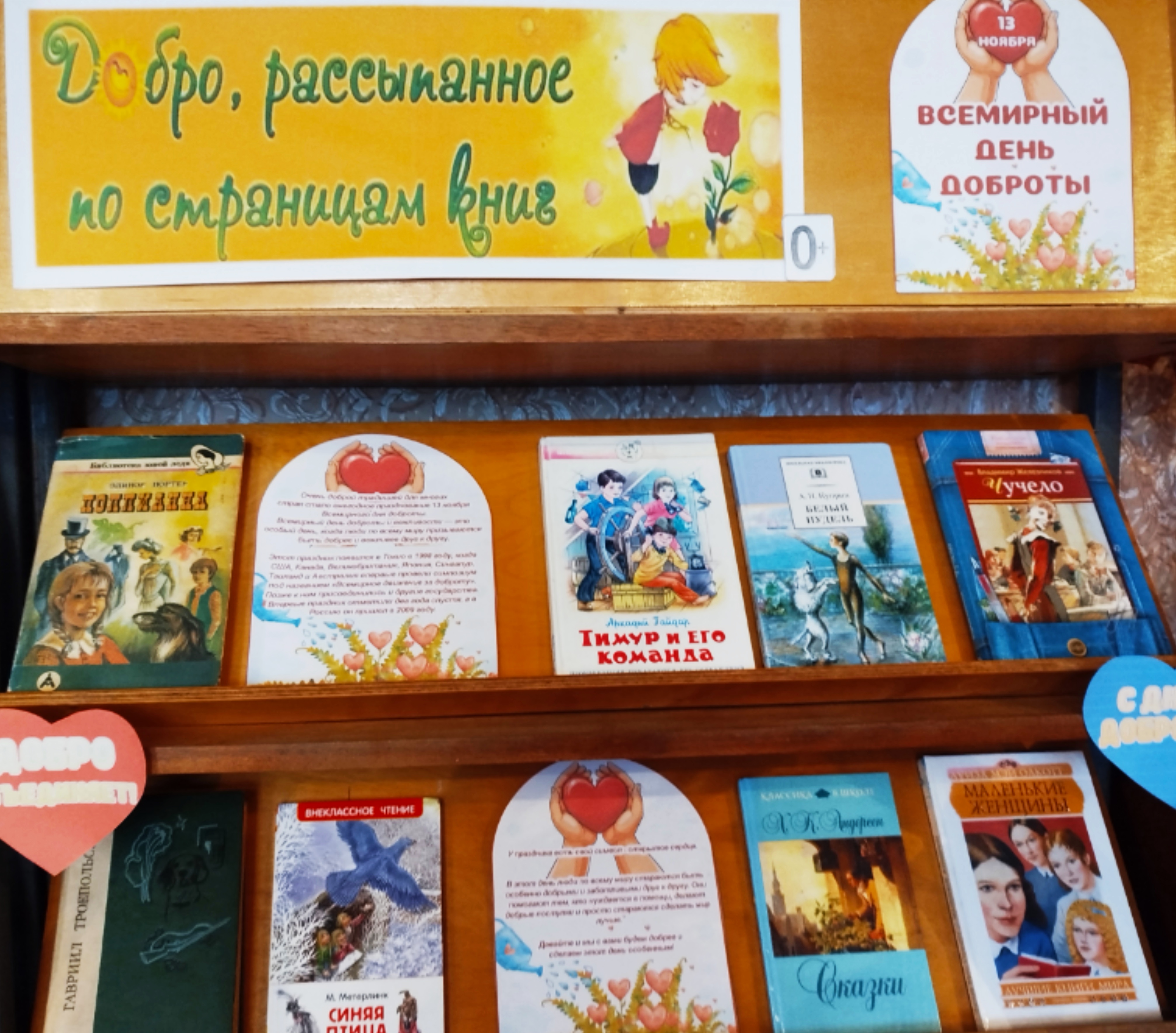13 ноября в Каснянской сельской библиотеке №17 в честь Всемирного дня доброты подготовлена специальная выставка-рекомендация "Пусть миром правит доброта", где собраны книги, которые дарят тепло, учат состраданию и рассказывают о больших и маленьких добрых поступках. На полках читателей ждут: "Маленький принц», "Приключения Тома Сойера", "Цветик-семицветик" и другие истории, где доброта меняет мир.