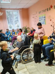 После изготовления открыток дети посетили Вяземский дом – интернат, где каждому ребенку выпала уникальная возможность подарить маленькую частичку своего сердца и доброты пожилому человеку.