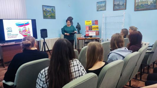 11 декабря 2025 г. в Центральной районной библиотеке прошел правовой час «Конституция – наш ориентир». Сотрудник ЦПИ ЦРБ провел экскурсию в историю создания Конституции РФ, раскрыл ее структуру и подчеркнул неоценимую значимость этого документа в жизни каждого гражданина России. Особое внимание было уделено обсуждению основных прав и свобод, закрепленных в Конституции, а также вопросов, касающихся прав и обязанностей граждан. Мероприятие сопровождалось электронной презентацией, которая помогла лучше усвоить представленный материал.