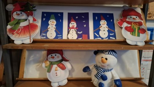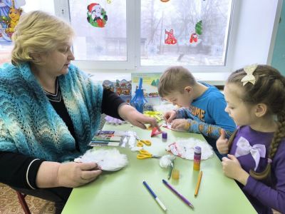Снеговики могут быть не только снежными, но и бумажными, сделанными из ватных дисков. Именно такие аппликации сделали ребята. Теплая дружеская атмосфера, совместный труд и взаимопомощь помогли ребятам почувствовать зимнюю сказочную атмосферу. Снеговики получились задорные и милые.