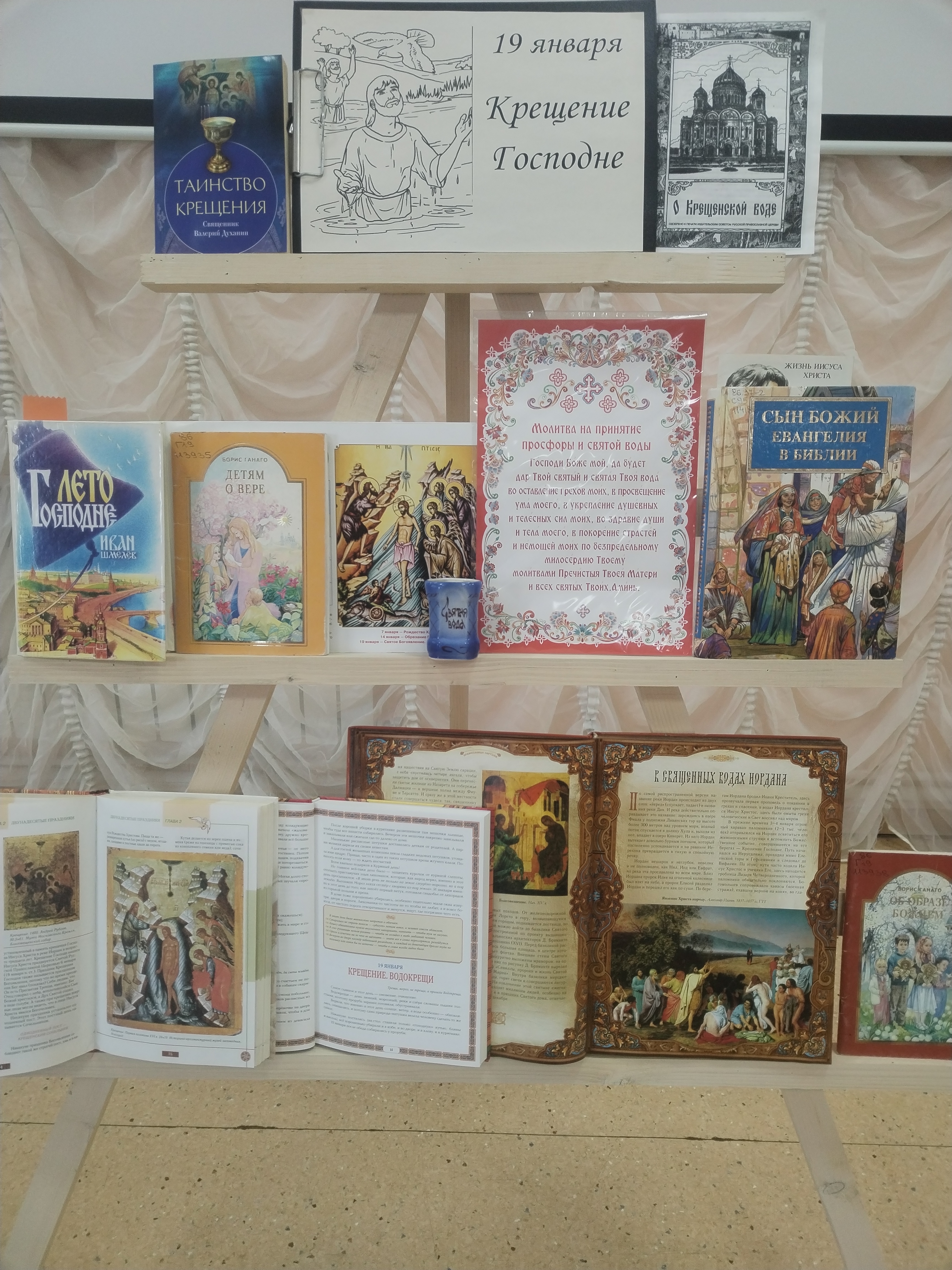 Особое внимание было уделено обзору выставки литературы «Крещение Господни» о святой воде. Гости узнали о её свойствах и значении в духовной жизни православных христиан.