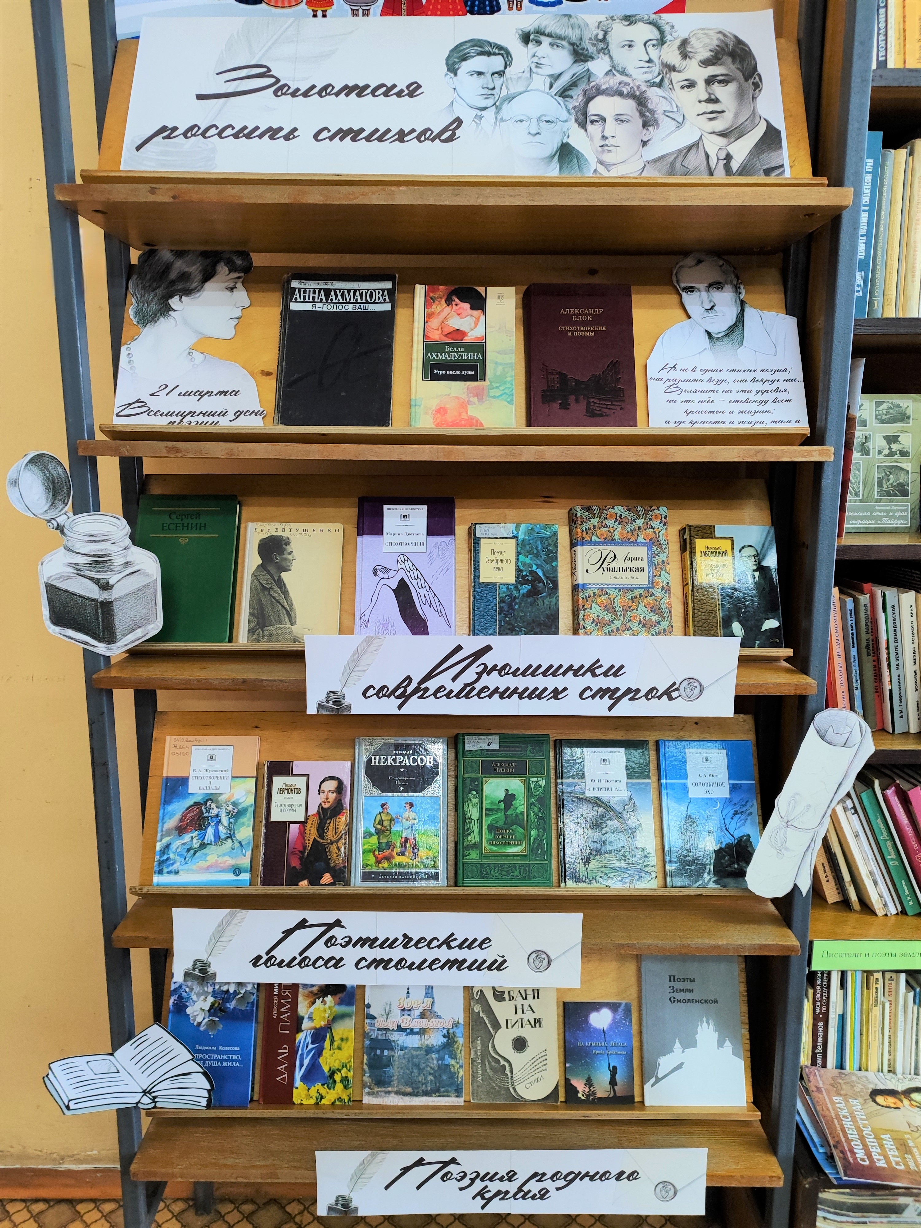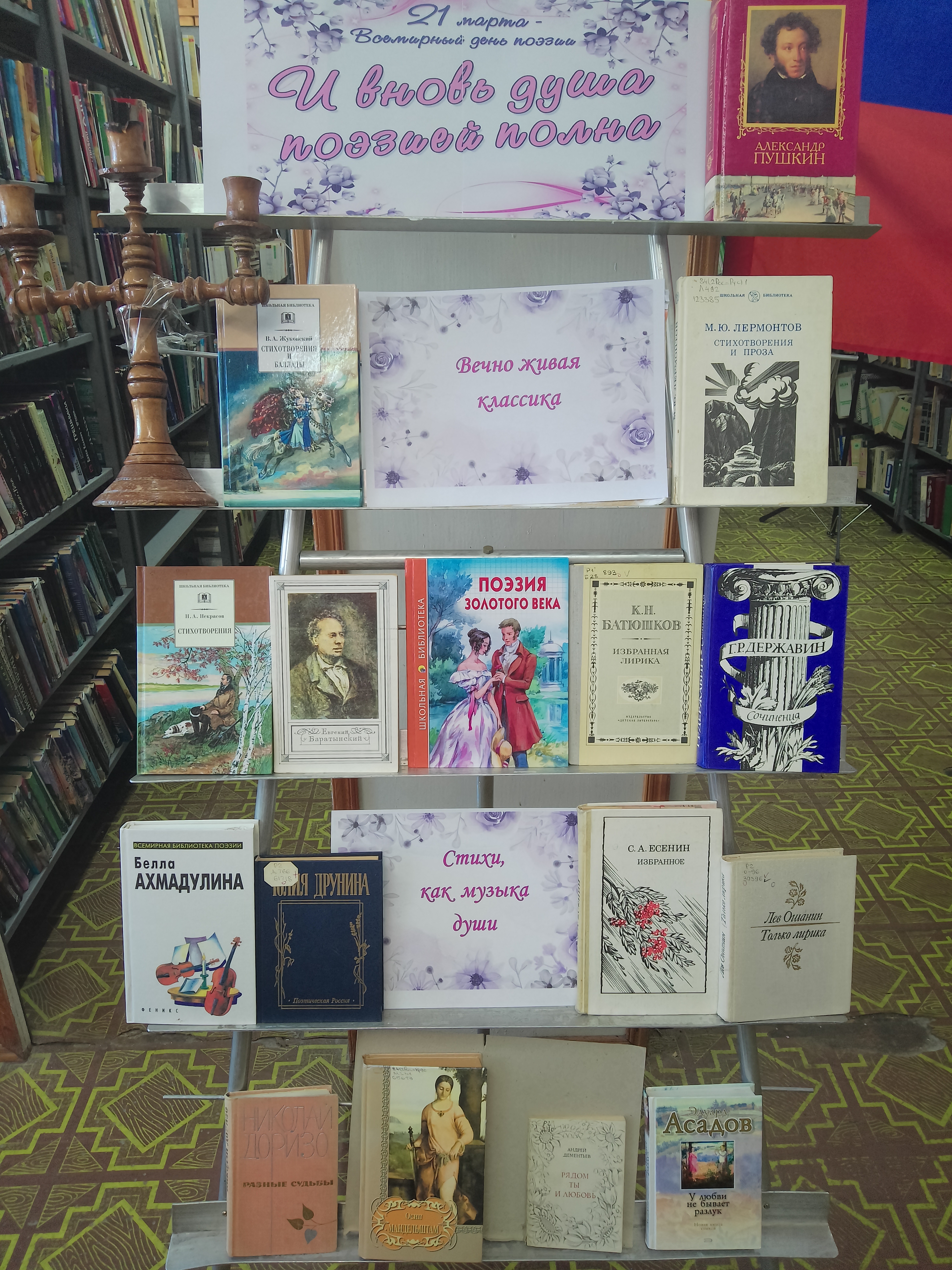 21 марта в городской библиотеке №37 открылась книжная выставка «Золотая россыпь стихов», посвященная Всемирному дню поэзии.