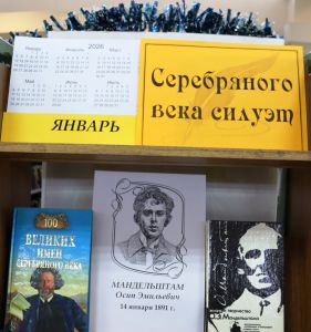 С 12 по 31 января в Центральной районной библиотеке представлена выставка-юбилей «Серебряного века силуэт», посвященная 135-летию со дня рождения поэта, переводчика, одного из ярчайших представителей Серебряного века Осипа Мандельштама.