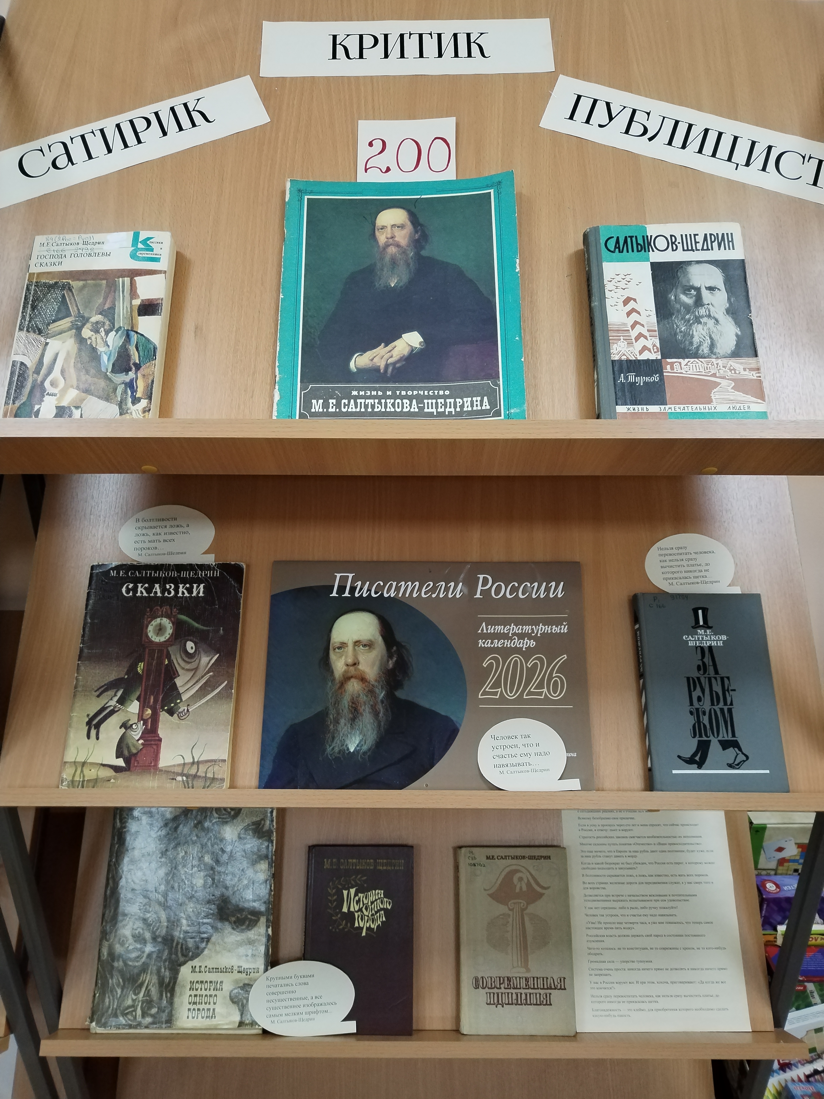 В Относовской сельской библиотеке №25, 27 января, оформлена выставка-портрет «Сатиры смелый властелин», приуроченная к знаменательной дате – 200-летию со дня рождения великого русского писателя, Михаила Евграфовича Салтыкова-Щедрина!