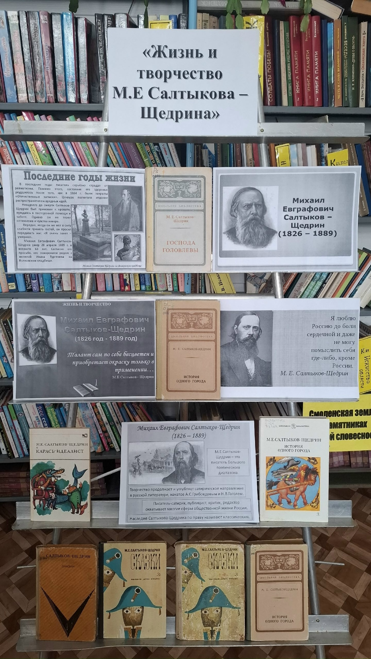 На выставке представлены книги, ставшие классикой русской литературы: «История одного города», «Господа Головлевы», «Пошехонская старина» и другие; интересные факты из жизни и творчества М.Е. Салтыкова-Щедрина, раскрывающие его личность и влияние на русскую литературу.