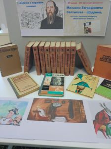 Для взрослых читателей библиотеки был проведен обзор выставки «Жизнь и творчество Салтыкова-Щедрина» о жизненном пути и литературном наследии писателя.