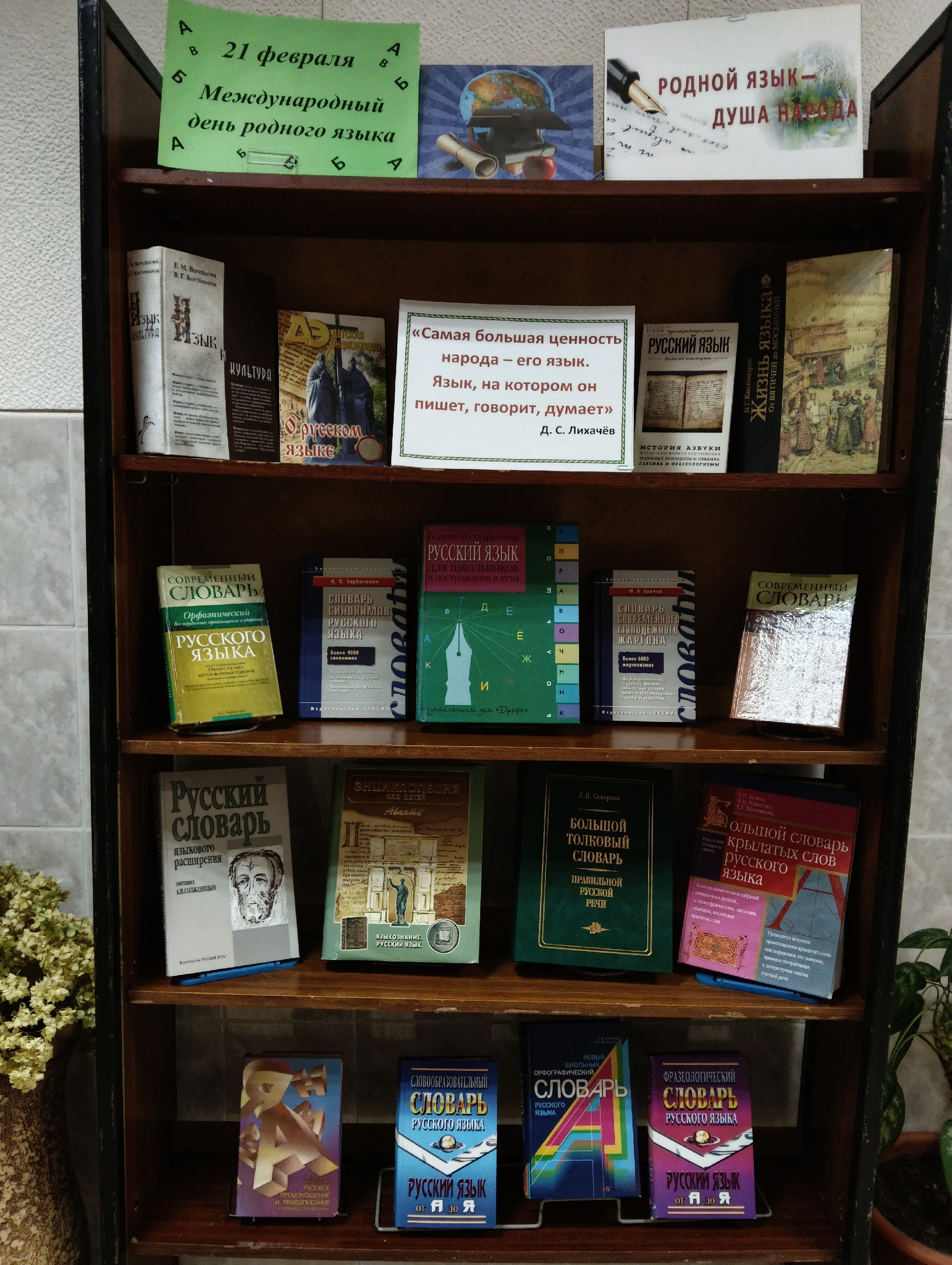 Библиотекари подготовили выставку-рассказ «Родной, живой, неповторимый», где были представлены: словари, справочники, пособия, раскрывающие особенности и богатство нашего языка. Большой интерес у участников мероприятия вызвала книга, посвящённая русской народной мудрости — сборник пословиц и поговорок Владимира Даля, знаменитого ученого - лингвиста, чей вклад в изучение русского языка огромен. Отдавая дань признательности учёному, подчеркивая важность сохранения наследия великого писателя и лексикографа, библиотекари рассказали присутствующим о жизни творчестве и научных достижениях В.Даля.
