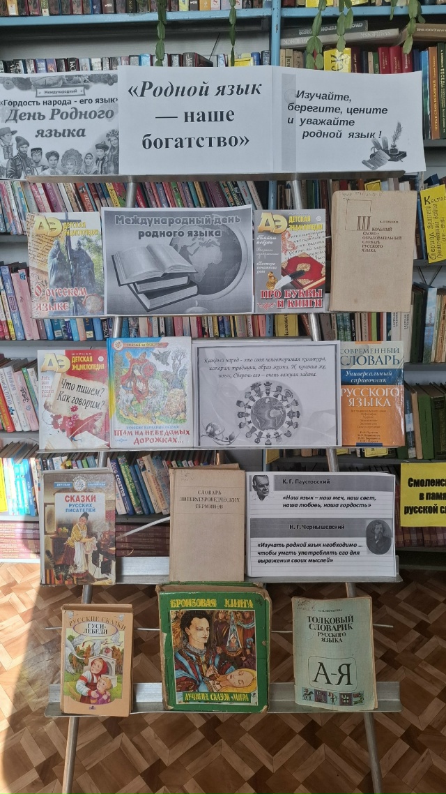 К Международному дню родного языка - важному празднику, который напоминает о необходимости сохранять и уважать языковое разнообразие мира в Кайдаковской сельской библиотеке №16 организована выставка – знакомство «Сокровища родного языка».