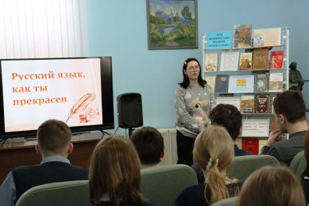 Библиотечный работник рассказала о значении русского языка в жизни людей, его красоте, богатстве, неповторимости и многогранности. Прочитала высказывание выдающихся писателей о русском языке.