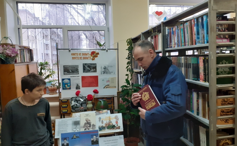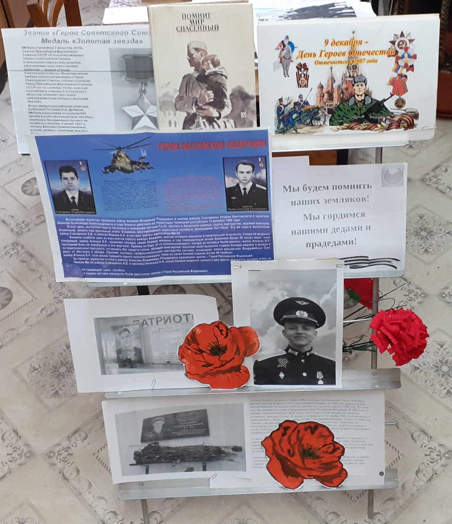 9 декабря городская библиотека №4 (поселка «Юбилейный») совместно с советником директора по воспитательной работе А.В. Дубнярской для обучающихся МБОУ СОШ №7 прошел тематический час памяти, приуроченный ко Дню Героев Отечества, который ежегодно отмечается 9 декабря.