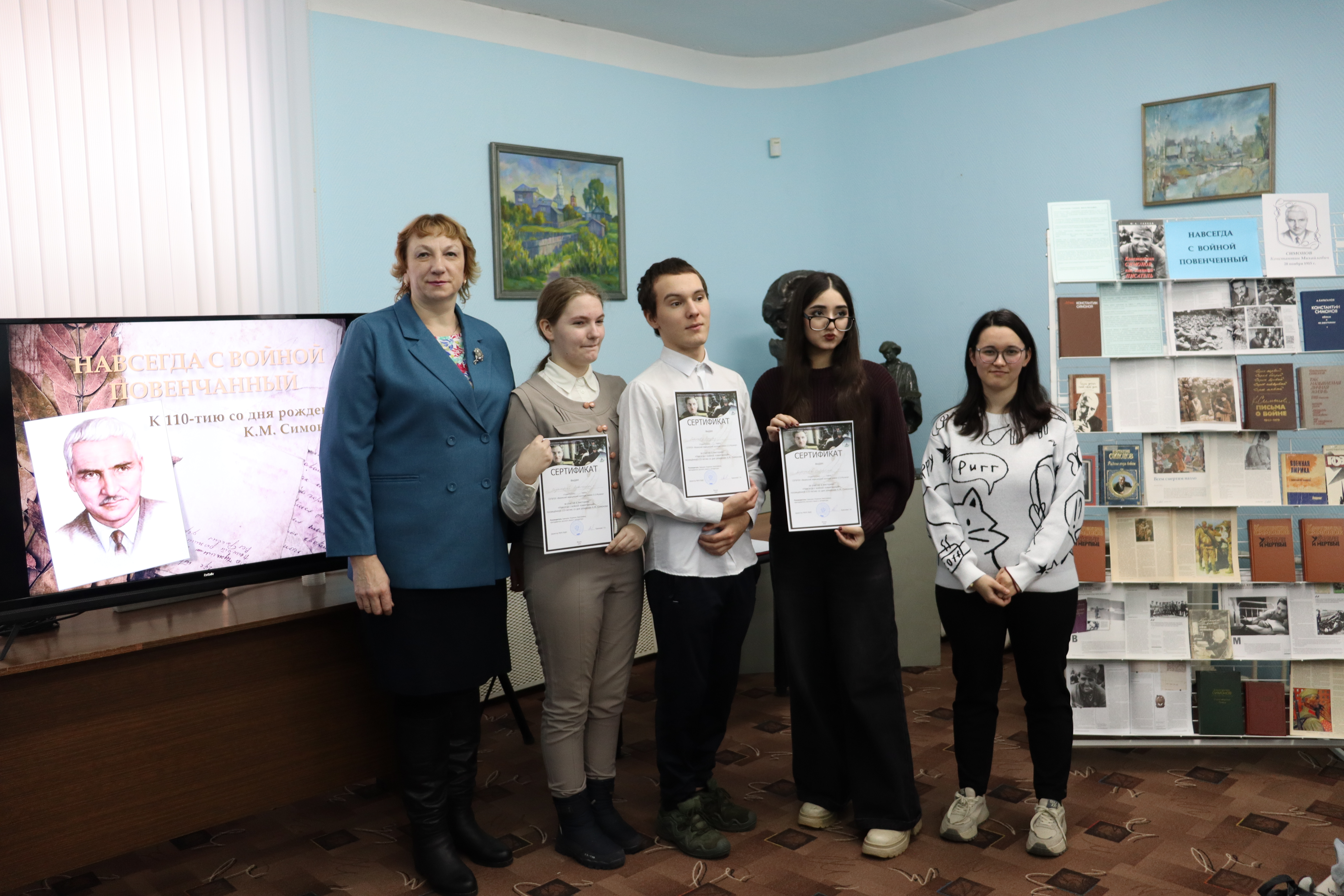 Под конец мероприятия, по сложившейся традиции, студенты приняли участие в викторине по биографии Симонова. Самым активным и внимательным участникам вручались сертификаты победителя. В такие серые дни, на границе осенних дождей и зимних холодов, особенно важны подобные встречи. Они напоминают о тех, кто защищал нашу страну, используя слово как оружие, и дарил надежду своим творчеством. Это был не просто рассказ о советском писателе, а встреча с человеком, о котором вспоминаешь как о добром друге, даже если не знал его раньше.