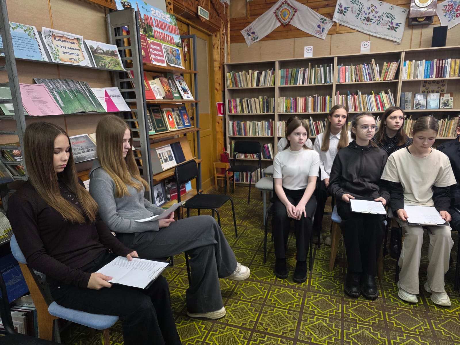 26 ноября в Кайдаковской сельской библиотеке №16 для обучающихся 7 класса Кайдаковской СОШ (под руководством советника директора по воспитательной работе Л.А. Степаненковой) проведен литературно – поэтический час «Поэзия мужества и воли», приуроченные к 110-годовщине со дня рождения К. М. Симонова и 80-летию Победы в Великой Отечественной войне.