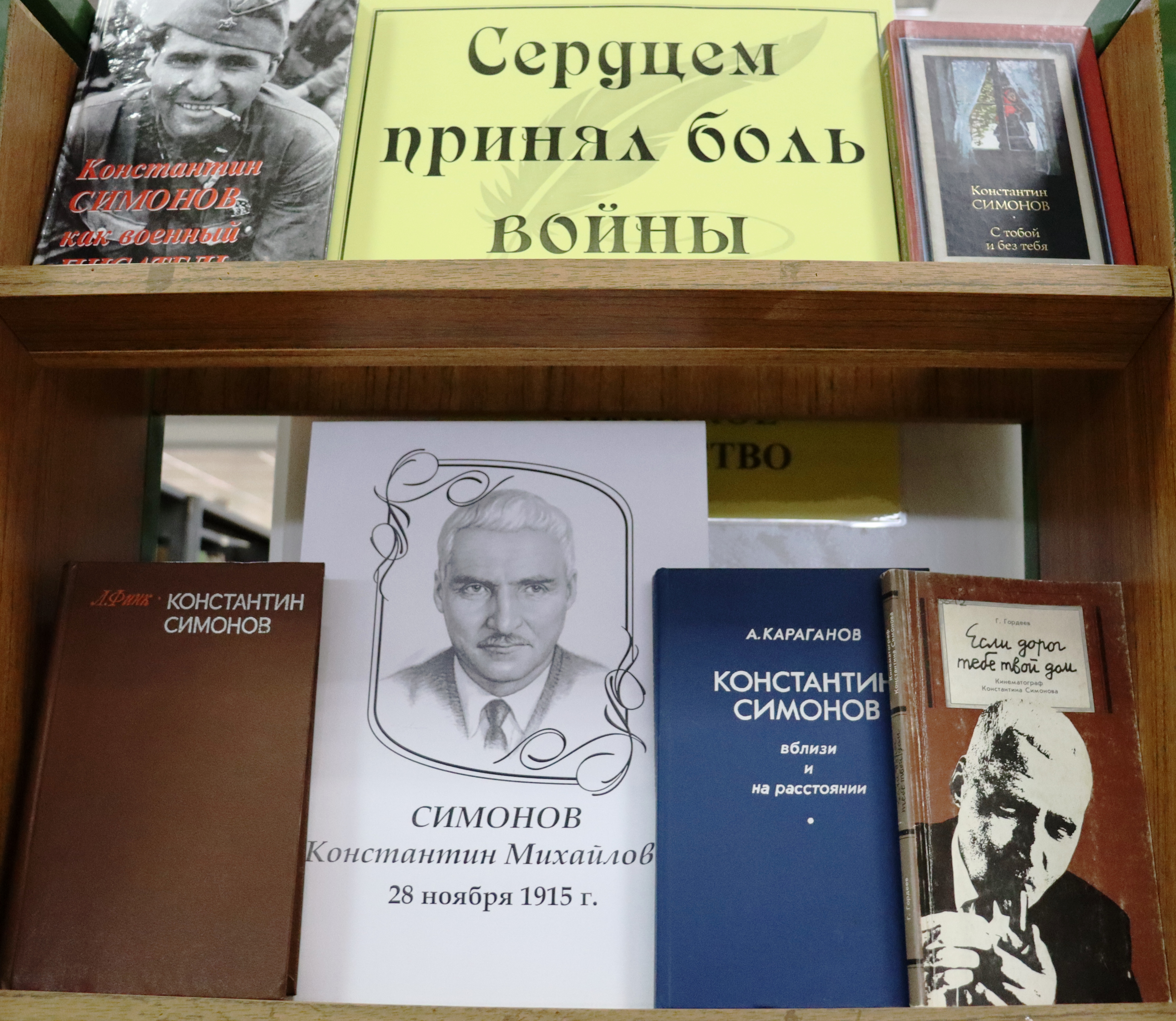 С 1 по 30 ноября в Центральной районной библиотеке действует выставка-юбилей «Сердцем принял боль войны», приуроченная к 110-летию со дня рождения выдающегося советского деятеля культуры – Константина Михайловича Симонова. Этот многогранный талант, известный как поэт-фронтовик, драматург, киносценарист, журналист и военный корреспондент, оставил неизгладимый след в истории нашей страны.