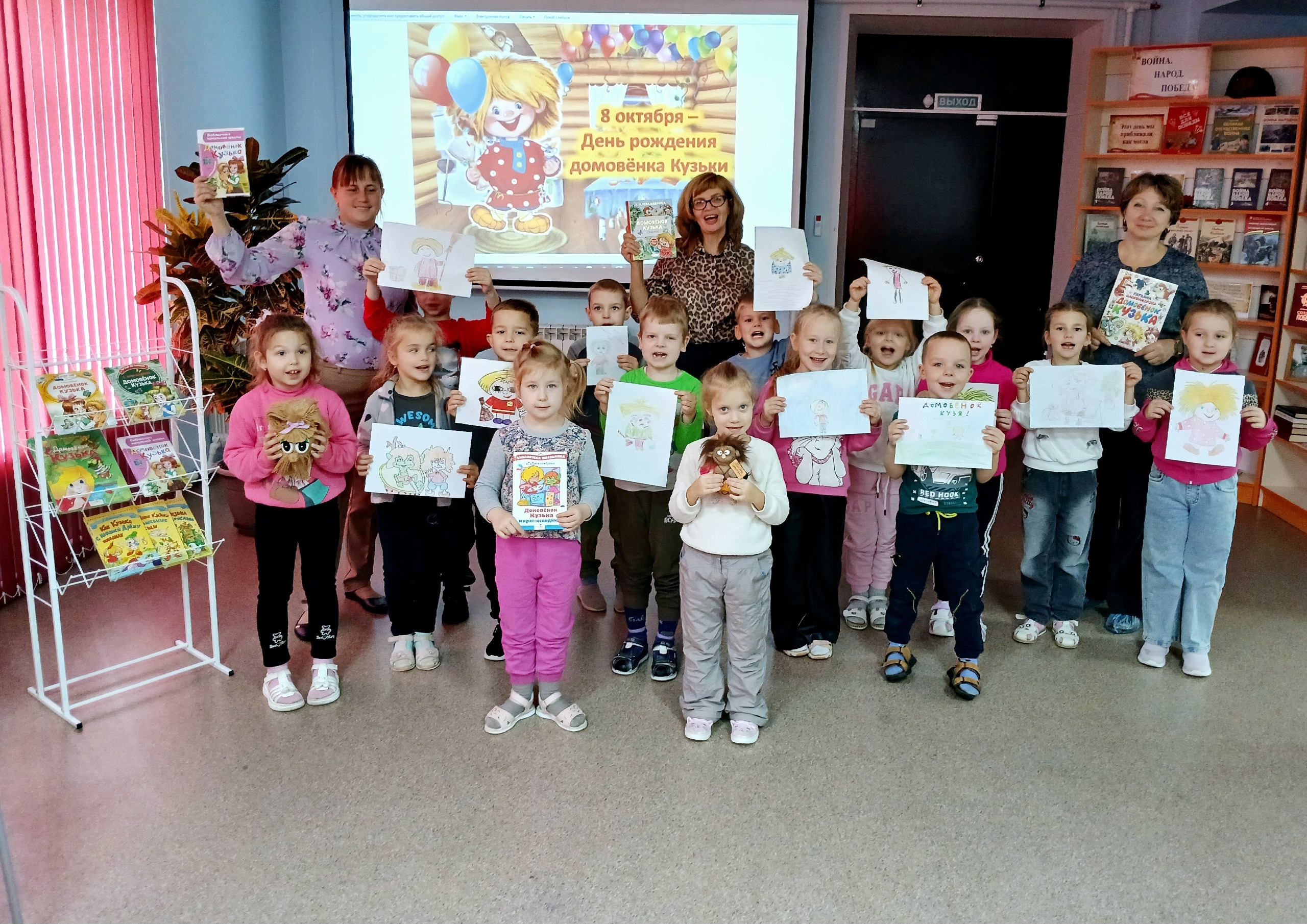 8 октября 2025 года для воспитанников МДОУ ДС №3 сотрудниками Центральной детской модельной библиотеки была подготовлена литературная игра «Домовенок Кузька приглашает друзей», посвященная литературному персонажу Домовенок Кузя и его Дню рождения. Ребята познакомились с жизнью и творчеством замечательной писательницы Т. И. Александровой, послушали отрывки из сказки «Домовёнок Кузька», отгадали загадки по теме и посмотрели мультфильм про домовенка. Гости библиотеки пришли не с пустыми руками, а подарили библиотеке свои рисунки, посвященные дню рождения литературного героя.