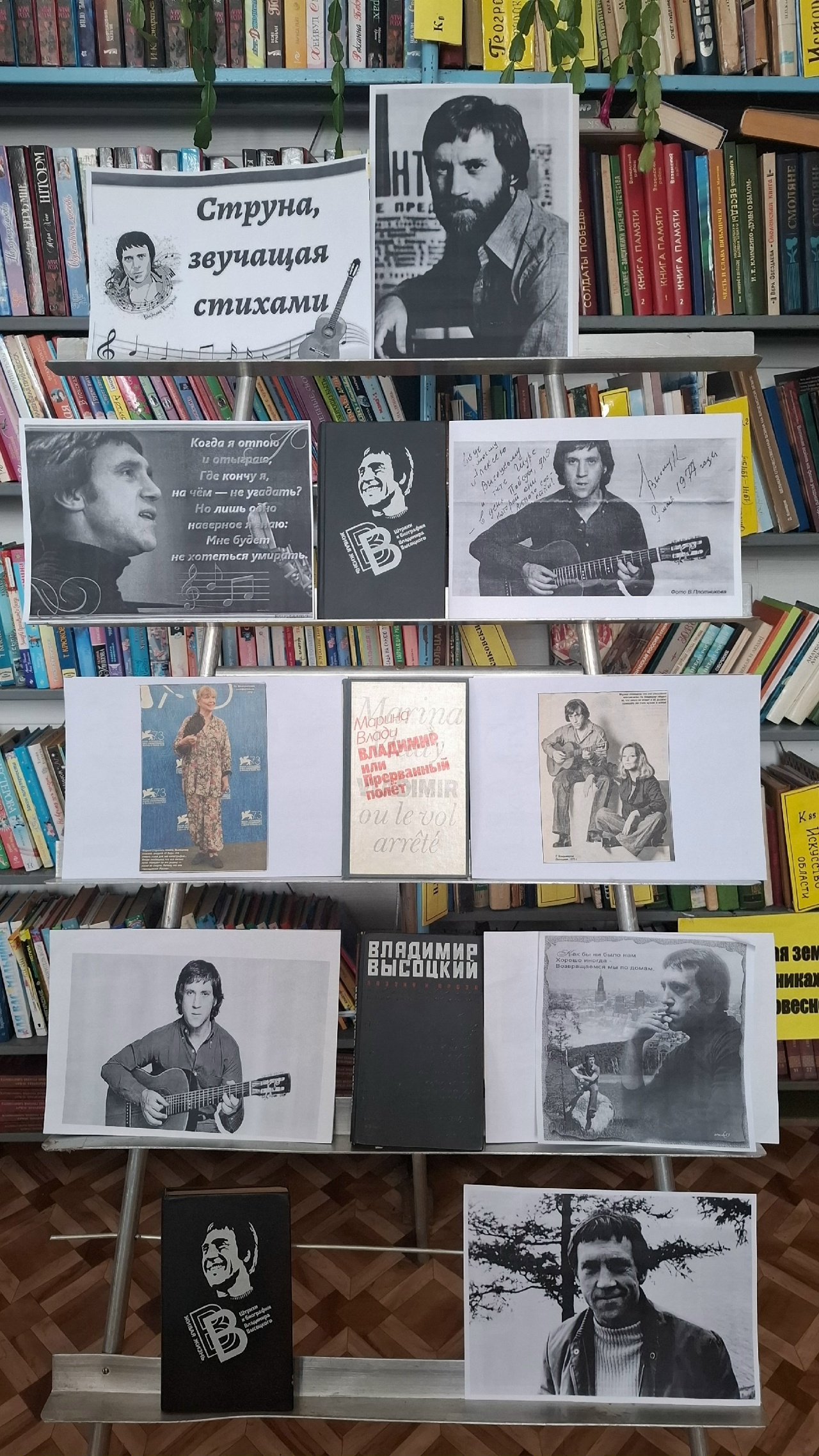 Кроме того, присутствующие имели возможность ознакомиться с выставкой книг «Струна, звучащая стихами», посвященной творчеству Высоцкого. Каждый желающий смог найти для себя что-то новое и, возможно, даже открыть для себя незнакомые ранее произведения великого барда.