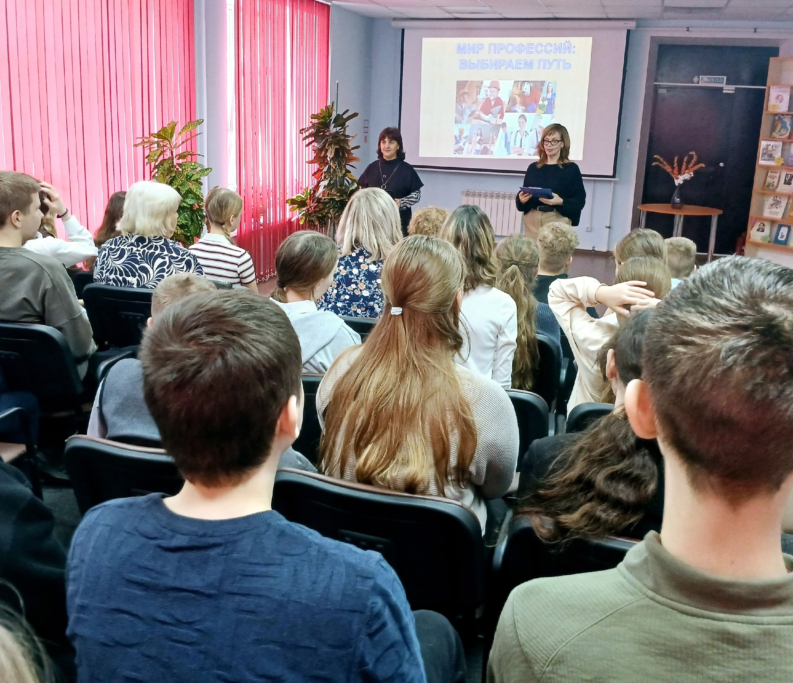 12 февраля в Центральной детской модельной библиотеке, в рамках Всероссийской программы профориентации «Единая модель профориентации. Россия мои горизонты», прошла интерактивная познавательная встреча «Мир профессий: выбираем путь». Участниками встречи стали обучающиеся МБОУ СШ №10, а гостями - представители медицинской профессий, наши будущие медицинские сотрудники - студенты и педагоги «Вяземского медицинского колледжа» (СОГБПОУ «Вяземский медицинский колледж имени Е. О. Мухина»).