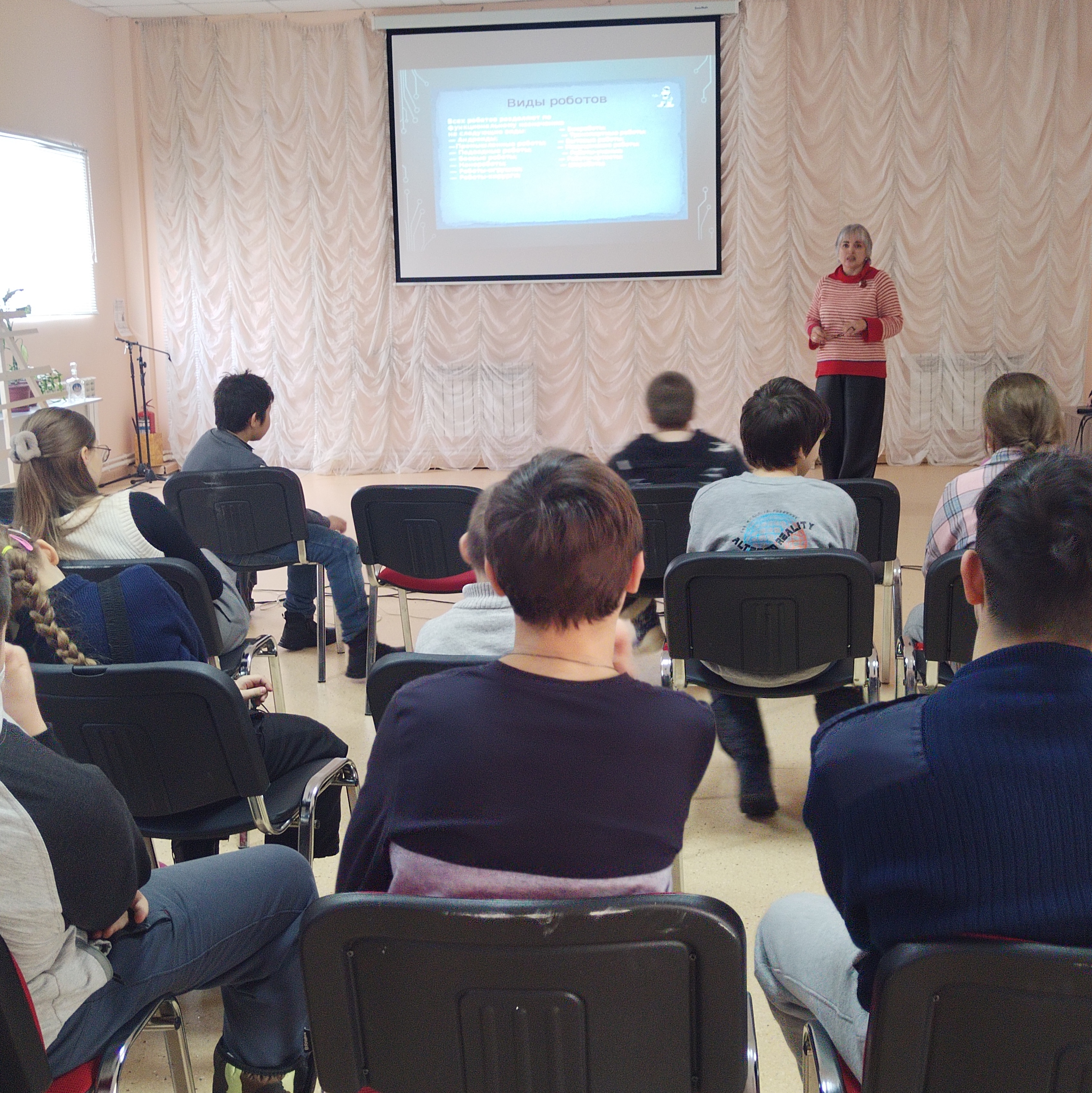 Ведущие постарались простым языком объяснить посетителям, что такое искусственный интеллект, какие существуют типы роботов и как технологии меняют нашу жизнь. Особое внимание уделили положительным аспектам ИИ, рассказывая о примерах его успешного внедрения в разных сферах, включая творчество.