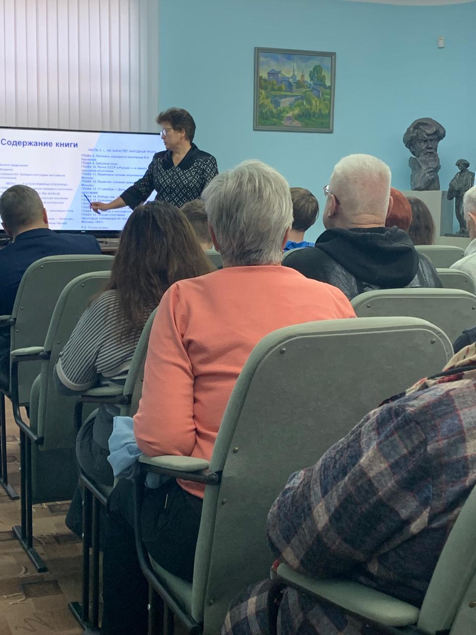Затем книгу Игоря Владимировича Меликова «Ополченье! Где тебя искать?..» представила историк и краевед Ольга Еркешевна Селявина. К сожалению, по объективным причинам Игорь Владимирович не смог приехать на презентацию книги.