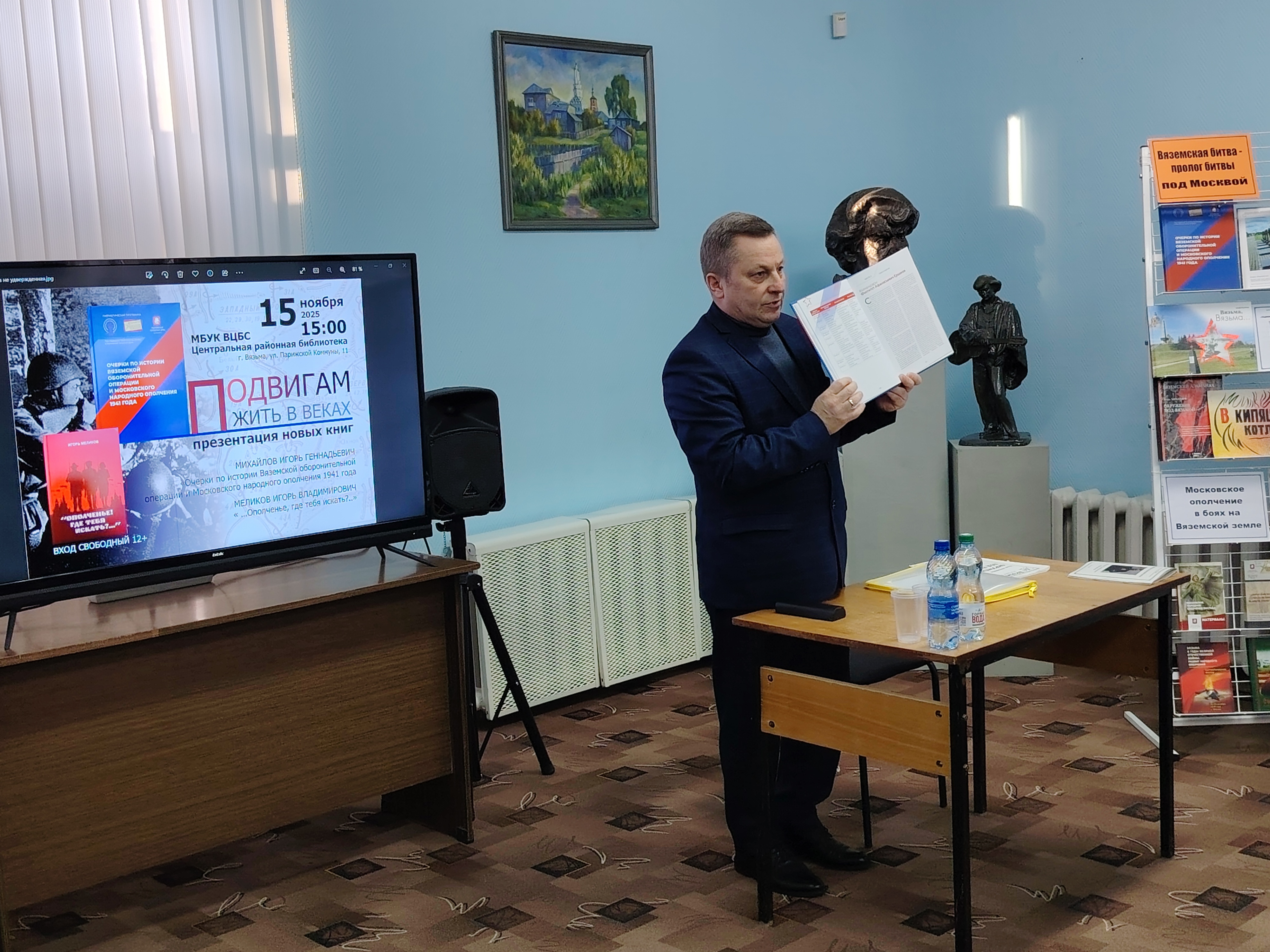 15 ноября в Центральной районной библиотеке состоялась презентация двух книг «Подвигам жить в веках», посвящённых одной тематике «Вяземская операция октября 1941 года: трагедия и подвиг».