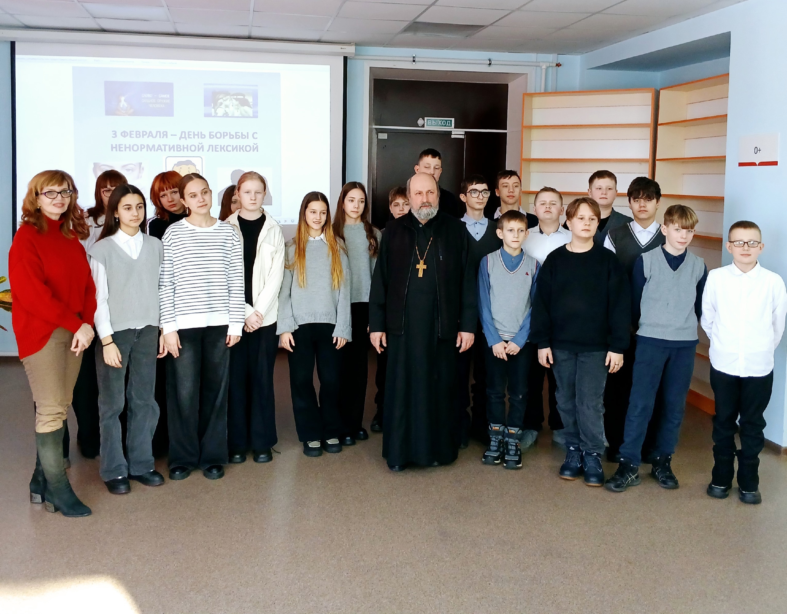 3 февраля в Центральной детской библиотеке, в рамках проекта «Библиотека без границ», прошел актуальный разговор «Сквернословию – нет! Живому слову – да!» участниками которого стали обучающиеся МБОУ СШ №1, 6 классы. В качестве лектора выступал протоиерей Отец Олег (Переверзев)