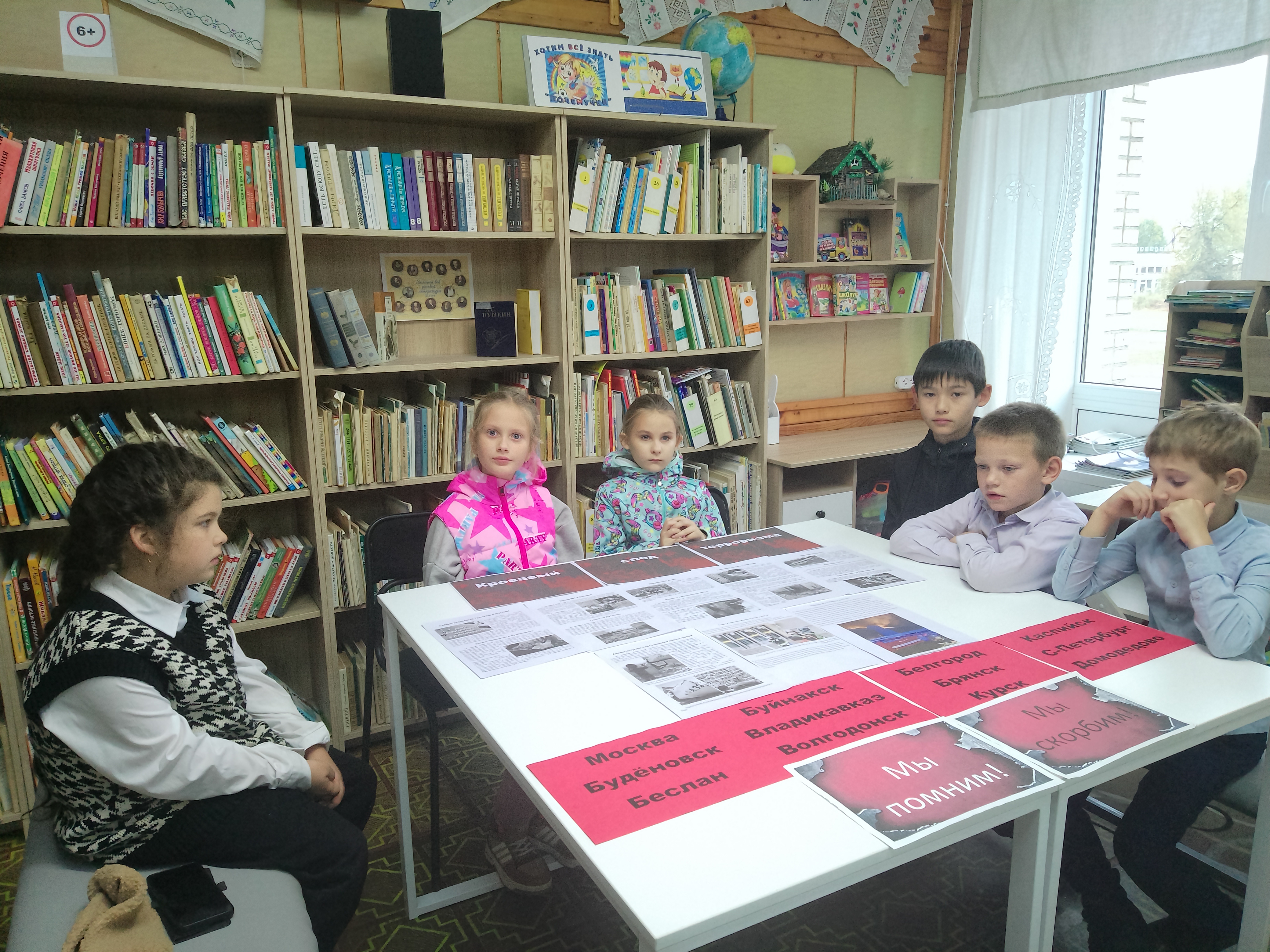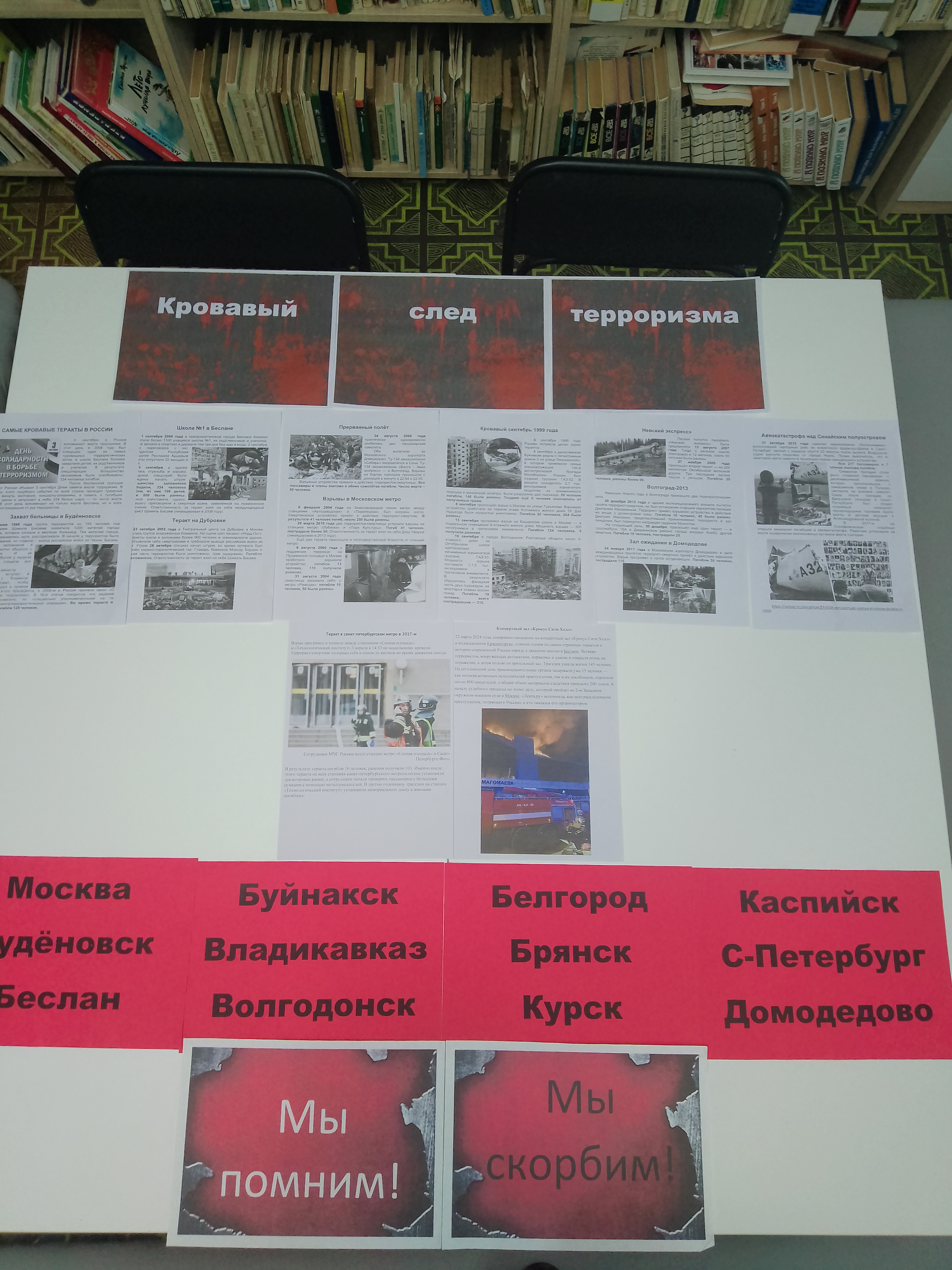 28 октября в Кайдаковской сельской библиотеке №16 для юных читателей был проведен информационно – познавательный час «Кровавый след терроризма».